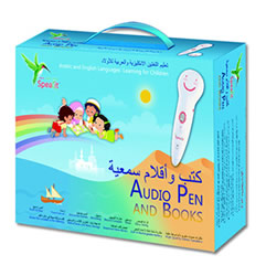 The Arabic English Box Set contains six books, a set of 36 SpeaKers, and a high specification E9000-A audio pen. It is created for young children from ages 2 to 14 years but is also very suitable for anyone wishing to have an enhanced method of learning words and sentences in both Arabic and English.